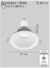 Product type:   Downlight Recessed  IP20